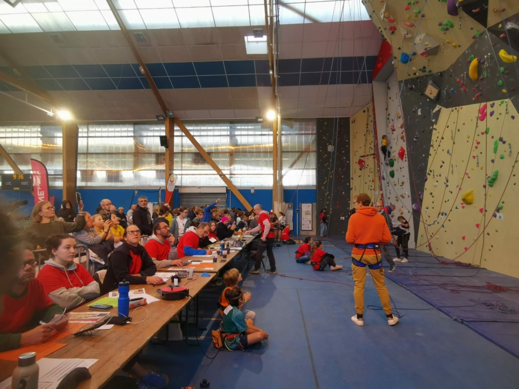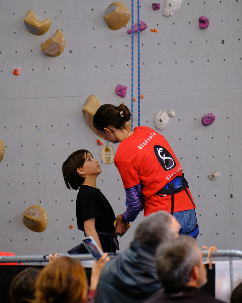 La salle n’a pas eu le temps de trop refroidir que déjà une nouvelle compétition accueillait 61 concurrents. Cette fois, ce sont les enfants qui se sont lancé à l’assaut du mur !